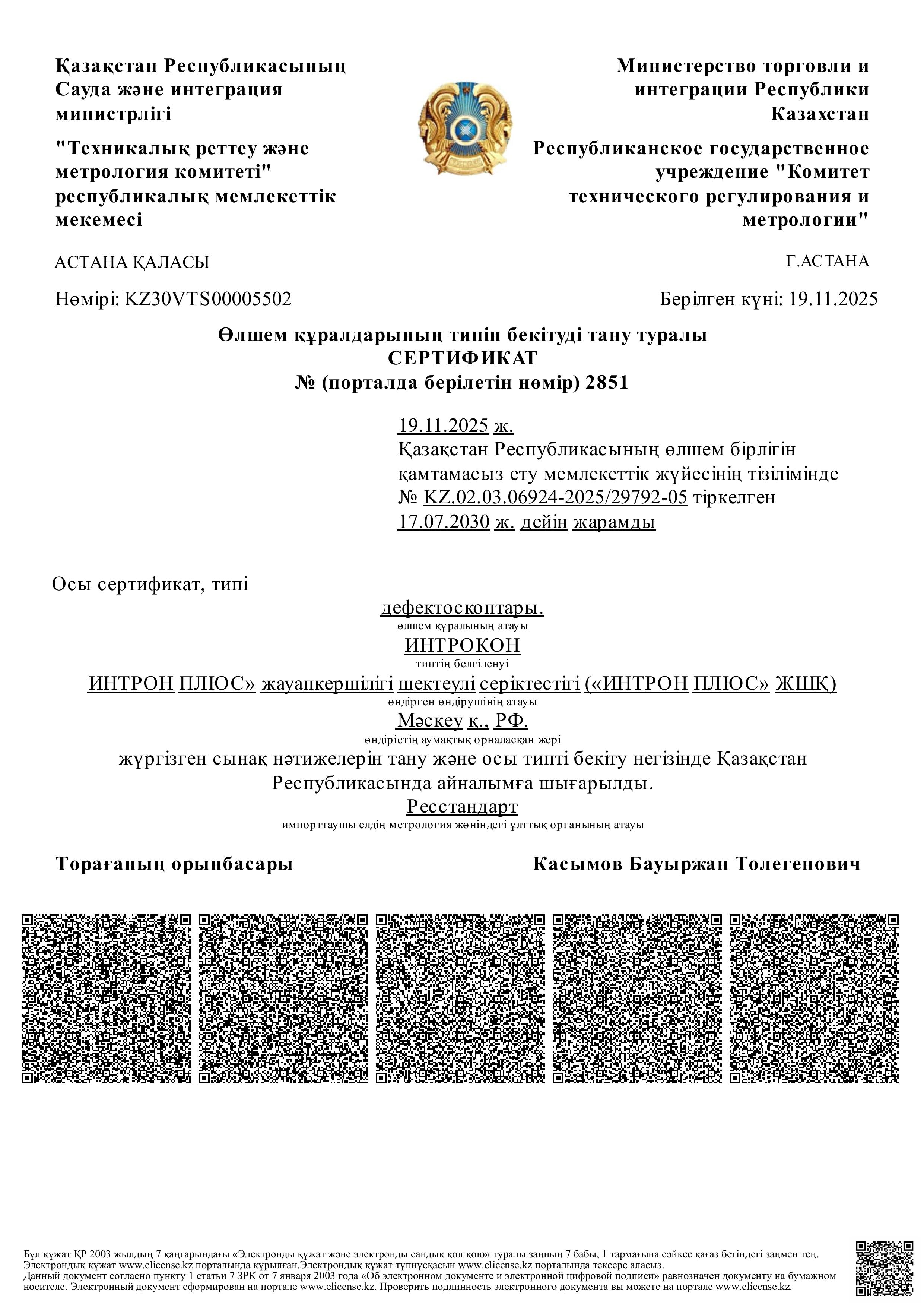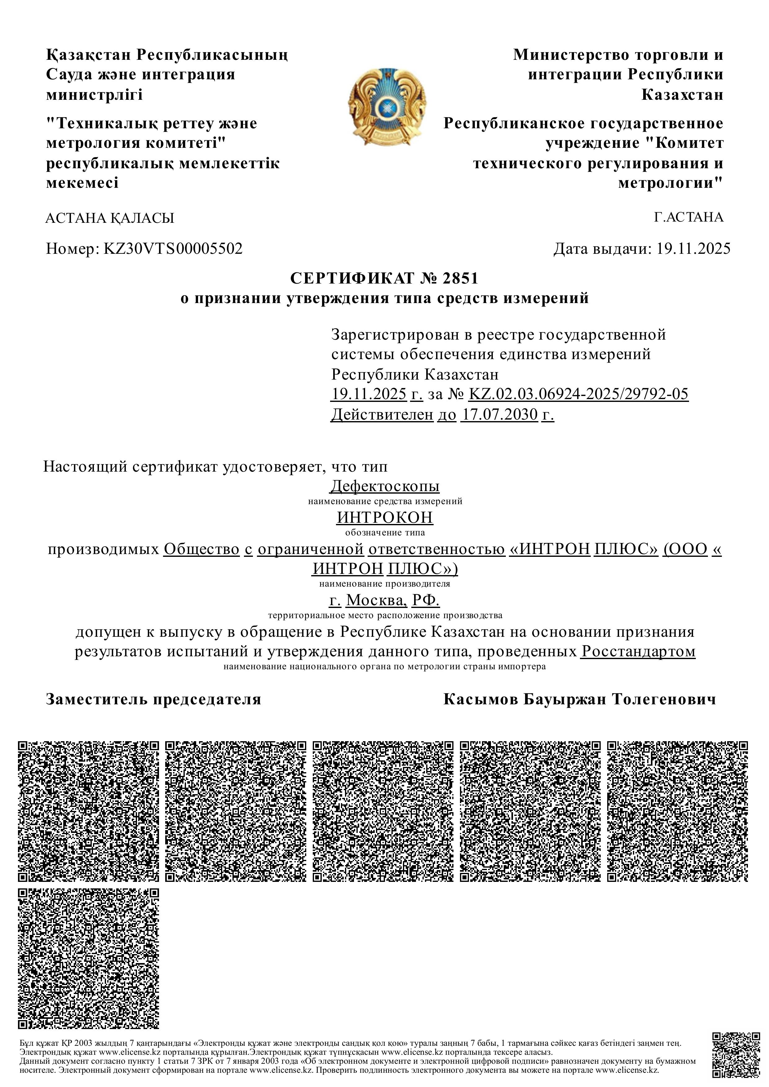 ИНТРОКОН сертифицирован государственными органами стандартизации и метрологии в России, внесен в единый реестр средств измерений.
